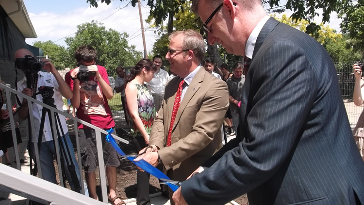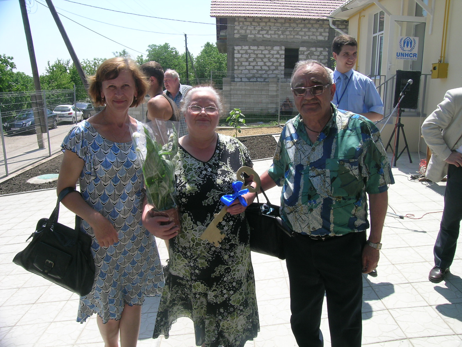 Refugee families from Armenia, Azerbaijan and Palestine received their keys at the official event. The Mayor from Rezeni, Mr. Ion Cretu, was the host for the Deputy Minister Ana Vasilachi (the Ministry of Labor and Social Protection), Deputy Minister Iurie Cheptanaru (Ministry of Interior), European Union Ambassador, Dirk Schubel and other officials.