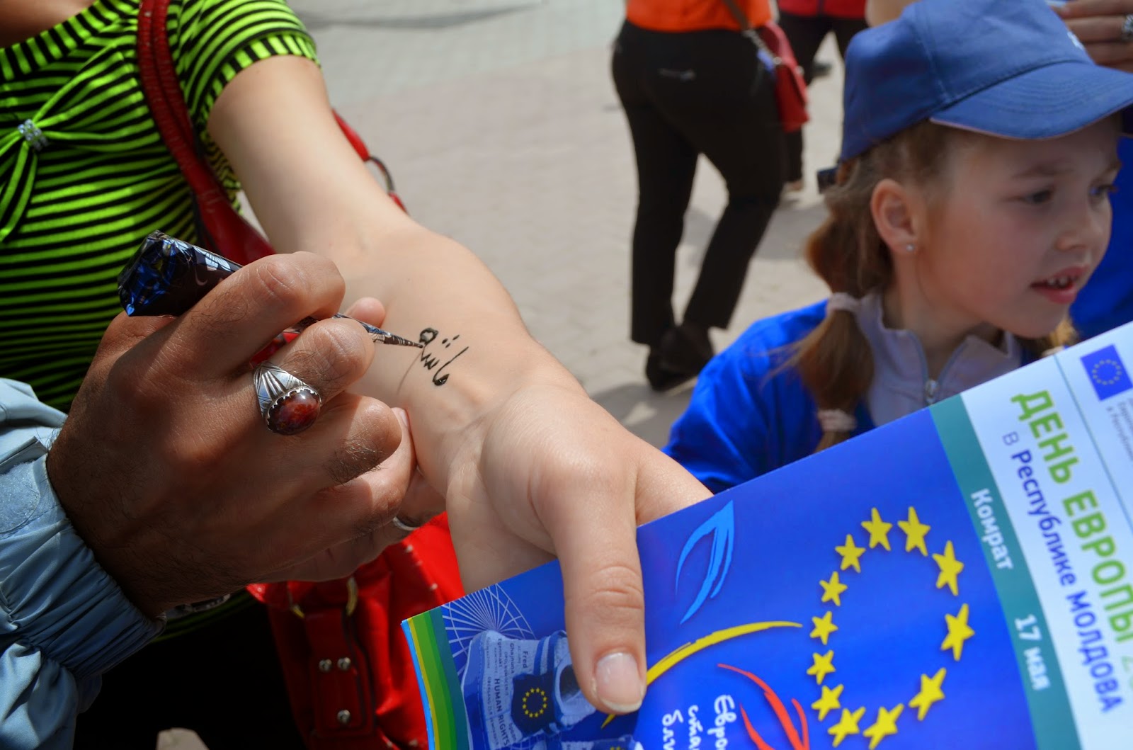 UNHCR hosted its own stall, alongside other UN agencies and international bodies. Visitors to the stall could collect a wide variety of information about UNHCR, refugees, asylum seekers and ask questions to staff and volunteers. There was also a quiz with questions related to UNHCR’s activities internationally and in Moldova . In addition, visitors could choose to have their names translated into Arabic and written in henna. There was also the opportunity to have different flags of the world face-painted by the European volunteers of CCR from the United Kingdom and Spain. All of these activities were very popular and successful, especially amongst children. There was always a queue of people waiting for their turn! UNHCR stall even received a visit from the Prime Minister of Moldova, Mr. Iurie Leanca, which was a great honour and privilege.