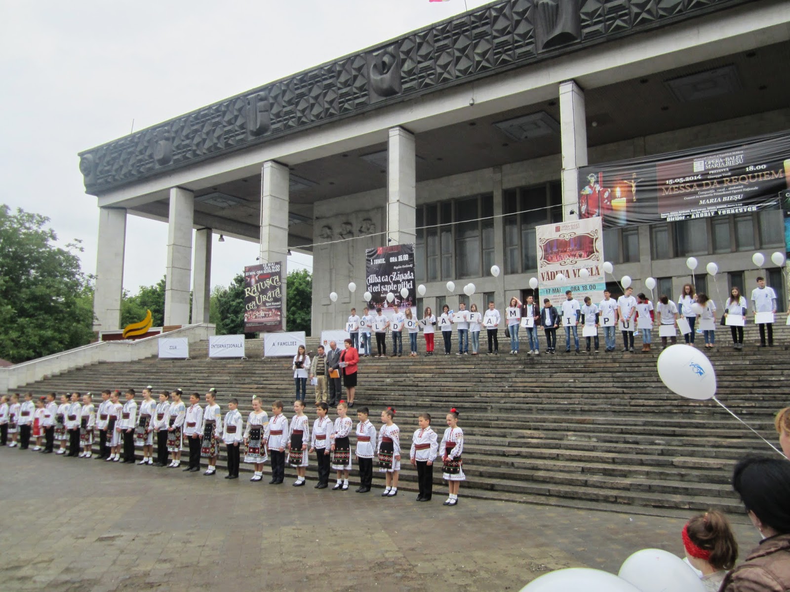 This year, the Charity Centre for Refugees (CCR) marked the occasion by inviting refugee families to take part in some of the festivities the city of Chisinau had to offer. Refugee families, staff and European volunteers at CCR joined many other local participants in front of the Maria Biesu National Theatre of Opera and Ballet for a small event commemorating families in Moldova. They enjoyed a performance of traditional Moldovan folk dance, performed enthusiastically (despite the rain!) by some local children. Speeches were also made by minister of Labour, Social Protection and Family, Mrs. Valentina Buliga and a representative of UNFPA Moldova, Mr. Ian McFarlane, showing appreciation for the strength and importance of families within Moldovan culture.