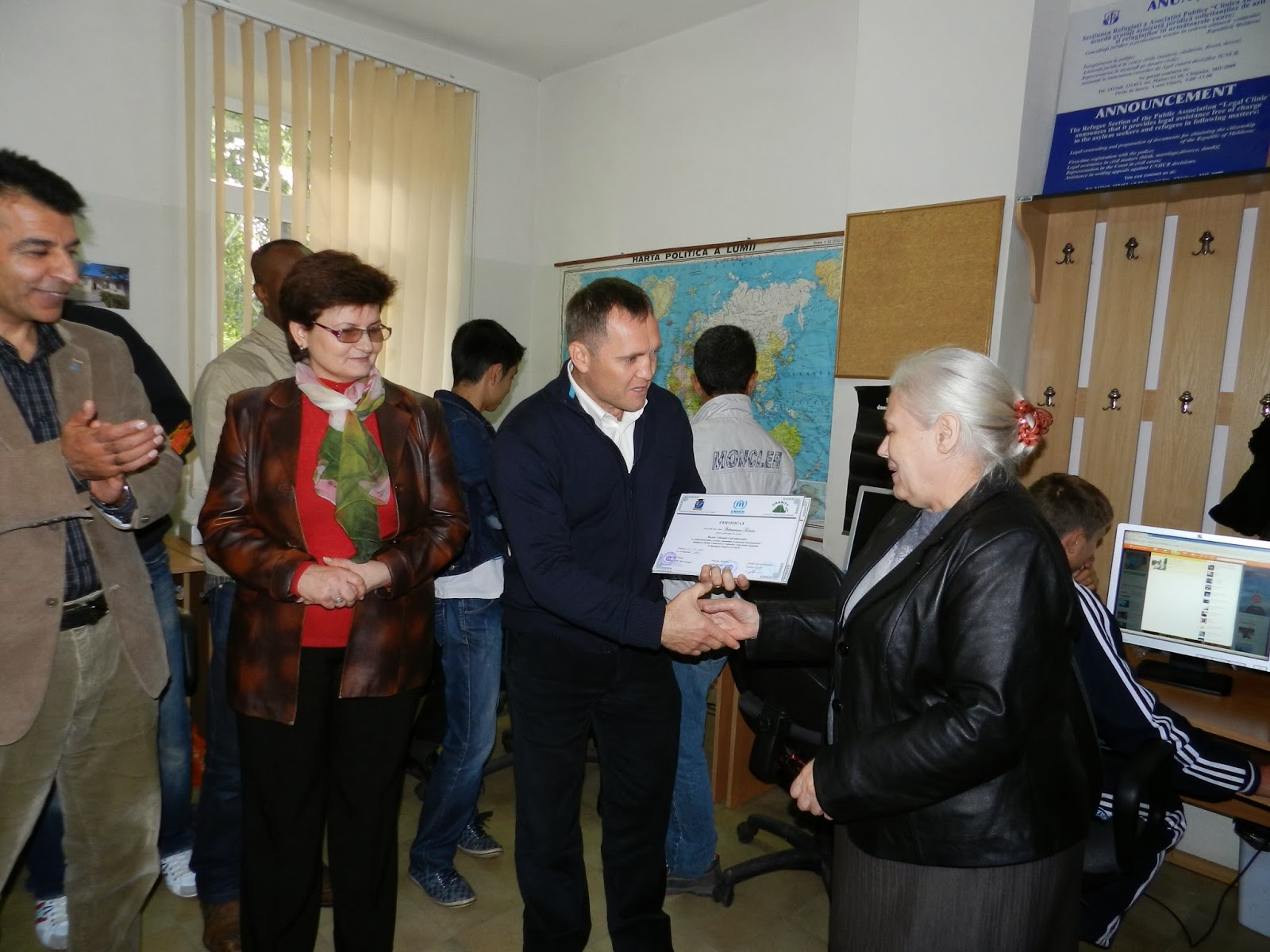 The Charity Centre for Refugees (CCR), UNHCR implementing partner, organized on the 25th September an awarding ceremony in order to hand the first diplomas to a group of refugees who successfully passed the computer skills study course and its final test, carried out by CCR in collaboration with the State Pedagogical University Ion Creanga, as part of the CTA (Community Technology Access) project.