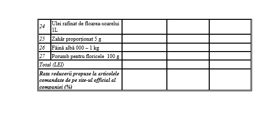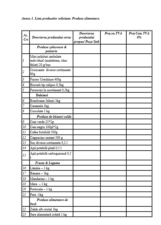 Anexa 1 – Lista produselor solicitate. Produse alimentare.