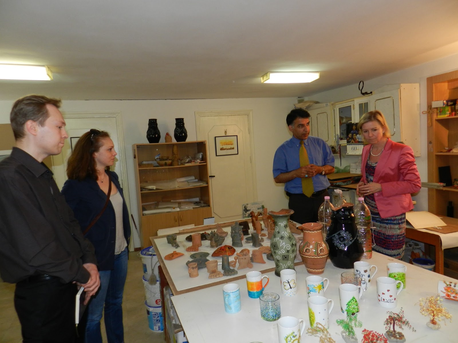 Urmînd planul vizitei, Excelenţa Sa s-a deplasat apoi la Universitatea Pedagogică “Ion Creangă”, unde UNHCR, în colaborare cu universitatea mentionată, organizează cursurile de studiere a limbii de stat. Acolo Ambasoarea Suediei a putut observa în ce condiţii beneficiarii CCR studiază, precum şi a putut vorbi cu cîţiva elevi din clasă. Ulterior a urmat o vizită la compania Portavita unde în prezent muncesc o parte din refugiaţi şi solicitanţi de azil.