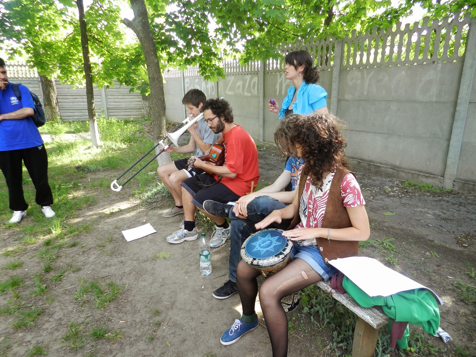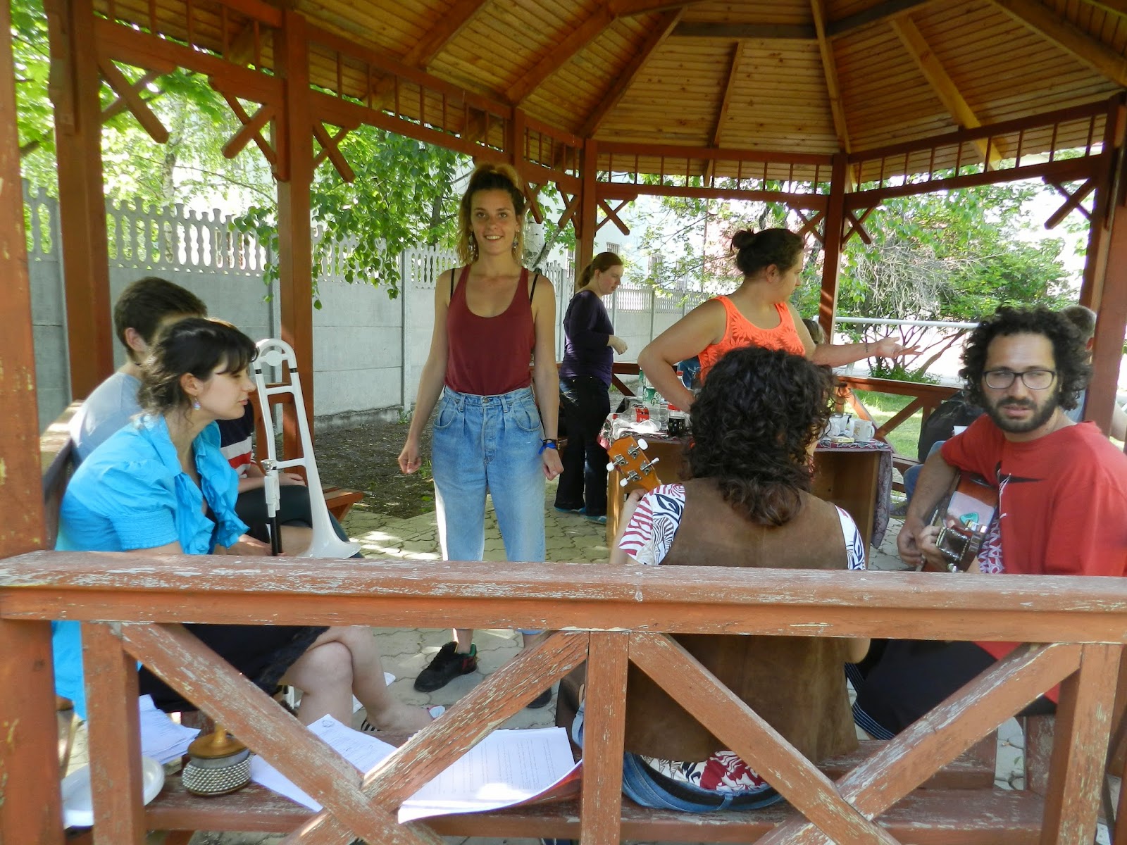 work in a cheerful atmosphere, sitting around the table in the sunny garden of the Centre.