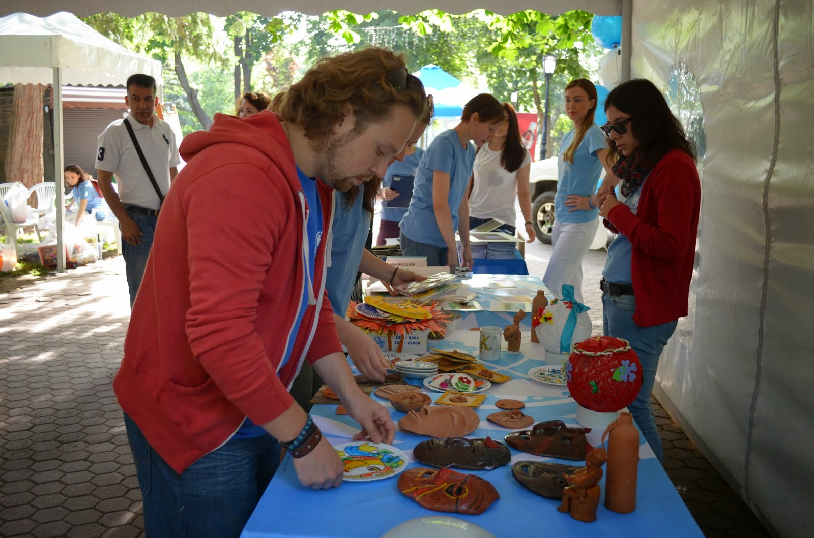 The Charity Centre for Refugees (CCR) with refugee/asylum seeker community exposed handicrafts, ceramic artworks and watercolour crayon paintings of refugee children, portraying their individual stories, feelings and emotions. Thus, every guest was able to collect information on the variety of art works. Moreover, CCR presented to the wide public the poster made by local and refugee/asylum seeker children at the Galata gymnasium. This work revealed colourful paintings carrying a very important message: ‘Our power is in friendship and diversity’. In addition, visitors could choose to have their names translated into Arabic and written in henna or to have UNHCR logo face-painted by European and local volunteers of CCR. All these activities were very successful and welcomed, especially amongst children.