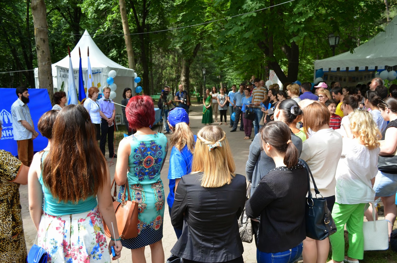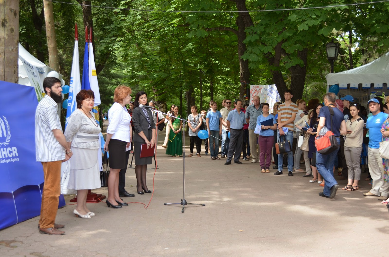 World Refugee Day and commemoration of Convention took place on 19th of June 2014 at the Temporary Accommodation Centre and on 20th of June 2014 in the Stefan Cel Mare Central Park of Chisinau.  BMA and UNHCR Moldova together with its implementing partners organised a wide variety of activities under the slogan “A family torn apart by war is too many”. Visitors could read stories of the refugees in Moldova  from the exhibition of photos. There was a possibility to play a table game called ‘Refugee Journey’ – the long journey of a refugee towards a safe place. Besides that, members of the public could enjoy tasting oriental